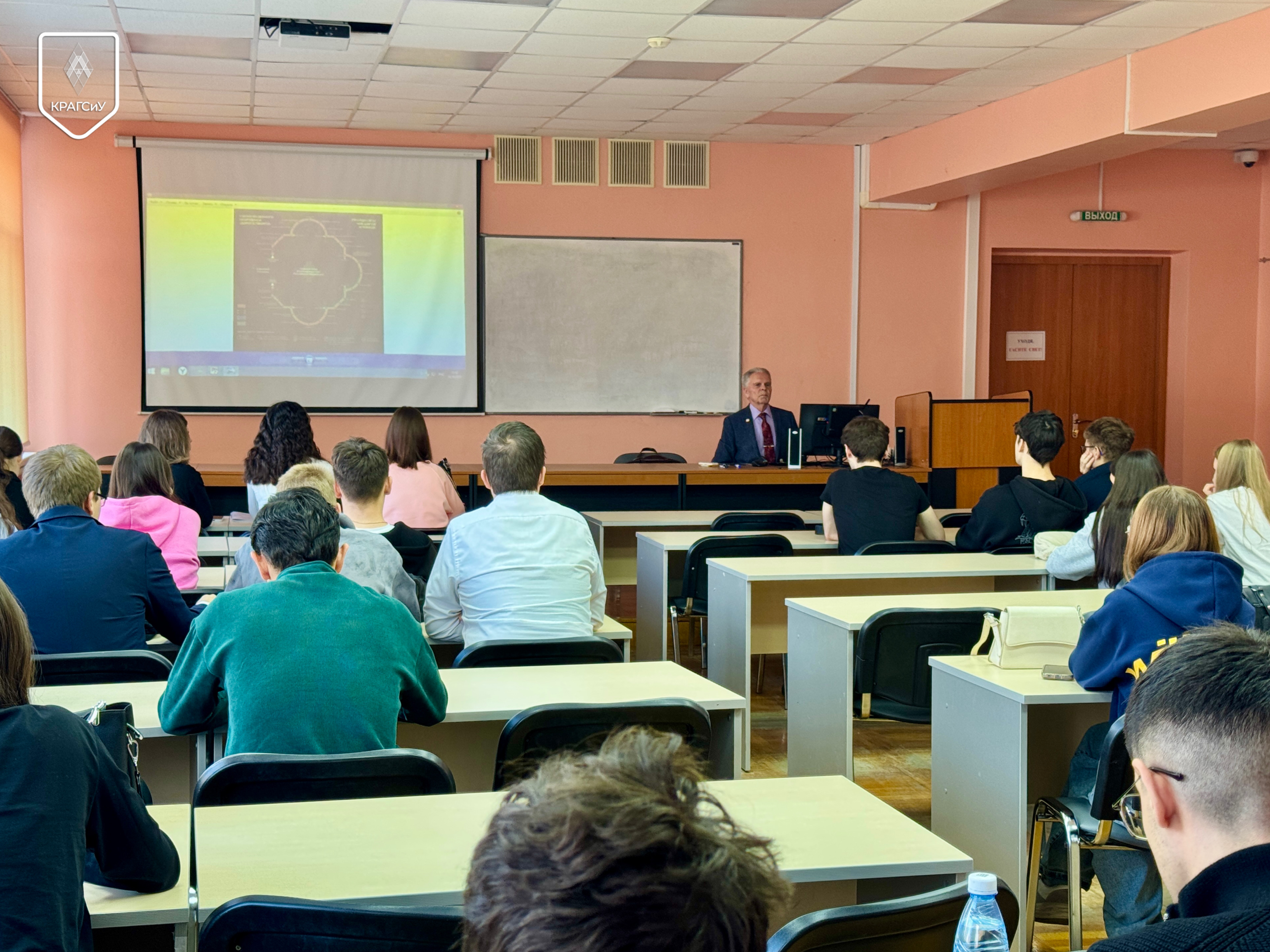 Для студентов первого и второго курсов Коми республиканской академии государственной службы и управления была организована встреча, приуроченная к 80-летию Великой Отечественной войны и Году Героя. Гостем встречи стал профессор, заслуженный работник Республики Коми, главный научный сотрудник Института физиологии КНЦ, лектор Общества «Знание» Юрий Солонин.