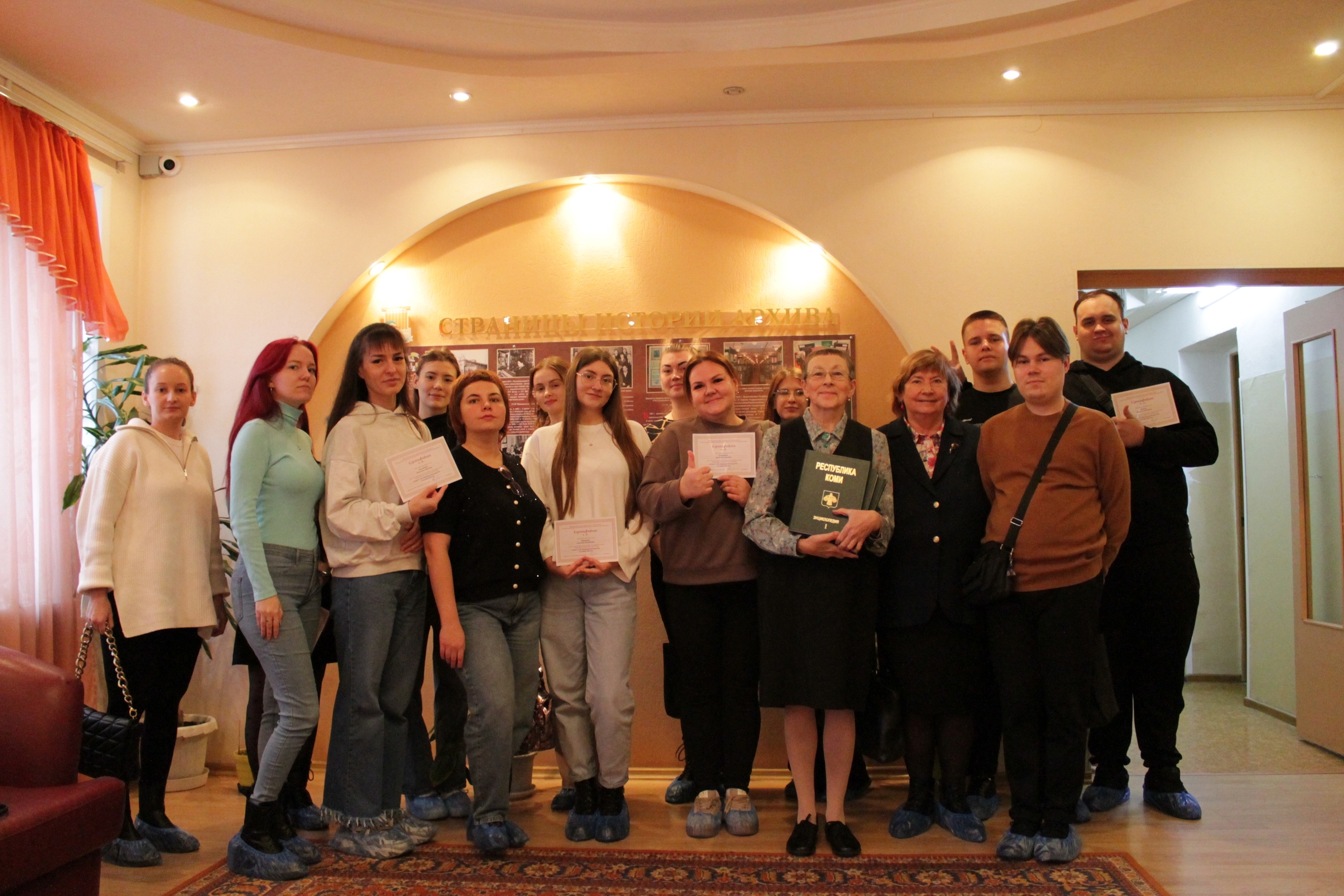 Для студентов было организовано мероприятие, во время которого они познакомились с особенностями профессиональной деятельности архива, получили представление о современных методиках хранения и обработки документации, а также оценили важность исторических материалов в контексте современного российского общества.