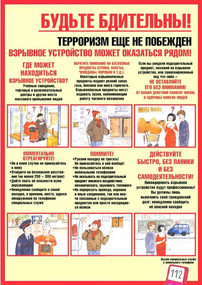 Важно: ни в коем случае не подбирайте с земли подозрительные предметы, деньги или упаковки. Любой незнакомый предмет может быть взрывным.