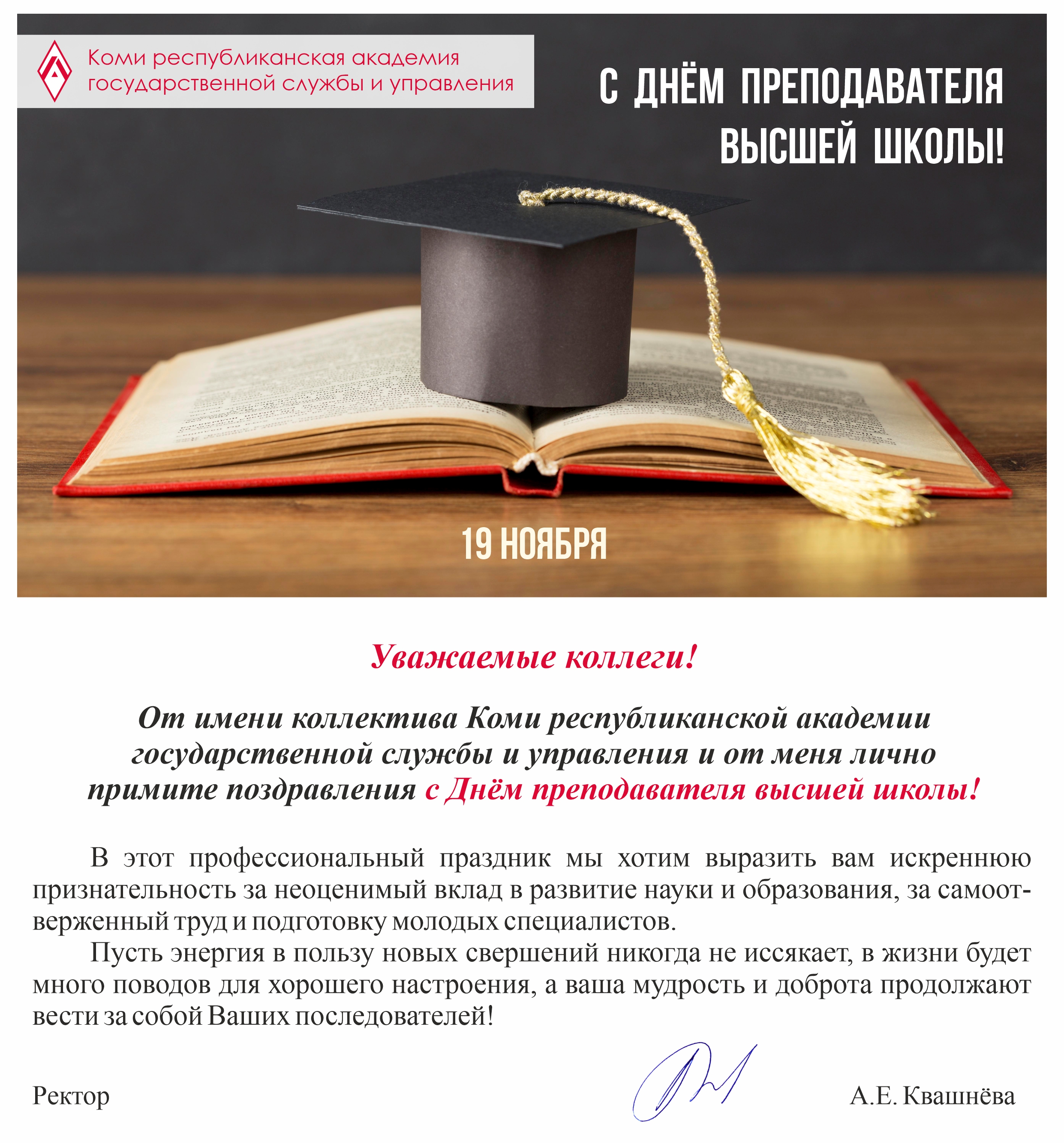 Поздравление ректора Коми республиканской академии государственной службы и управления Алёны Егоровны Квашнёвой.