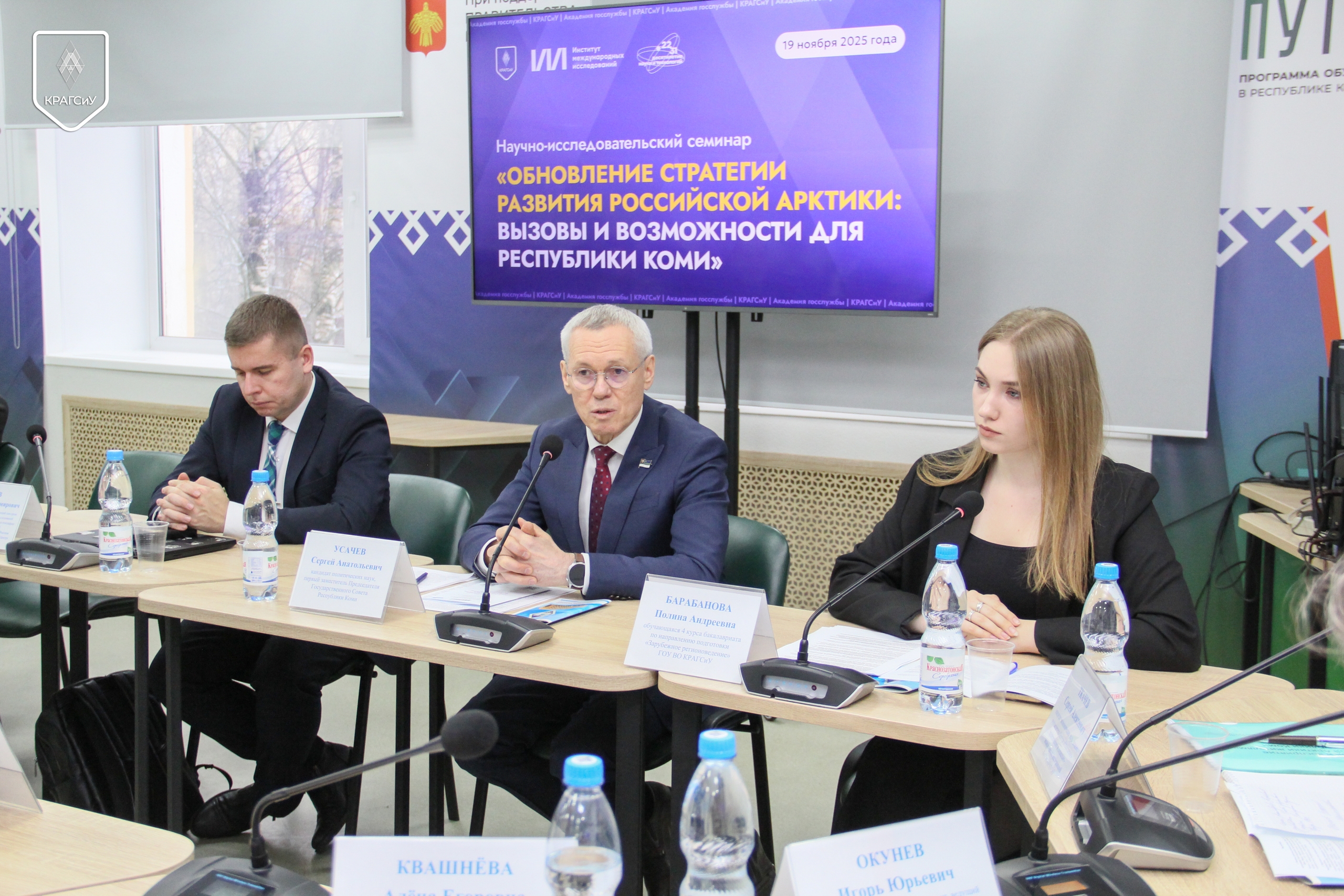 Научно-исследовательский семинар «Обновление стратегии развития Российской Арктики: вызовы и возможности для Республики Коми» состоялся в Академии госслужбы 19 ноября и собрал на своей площадке научное сообщество федерального и республиканского уровней, а также представителей органов власти Коми, магистрантов Академии и участников региональной программы «Пера. Путь героя».
