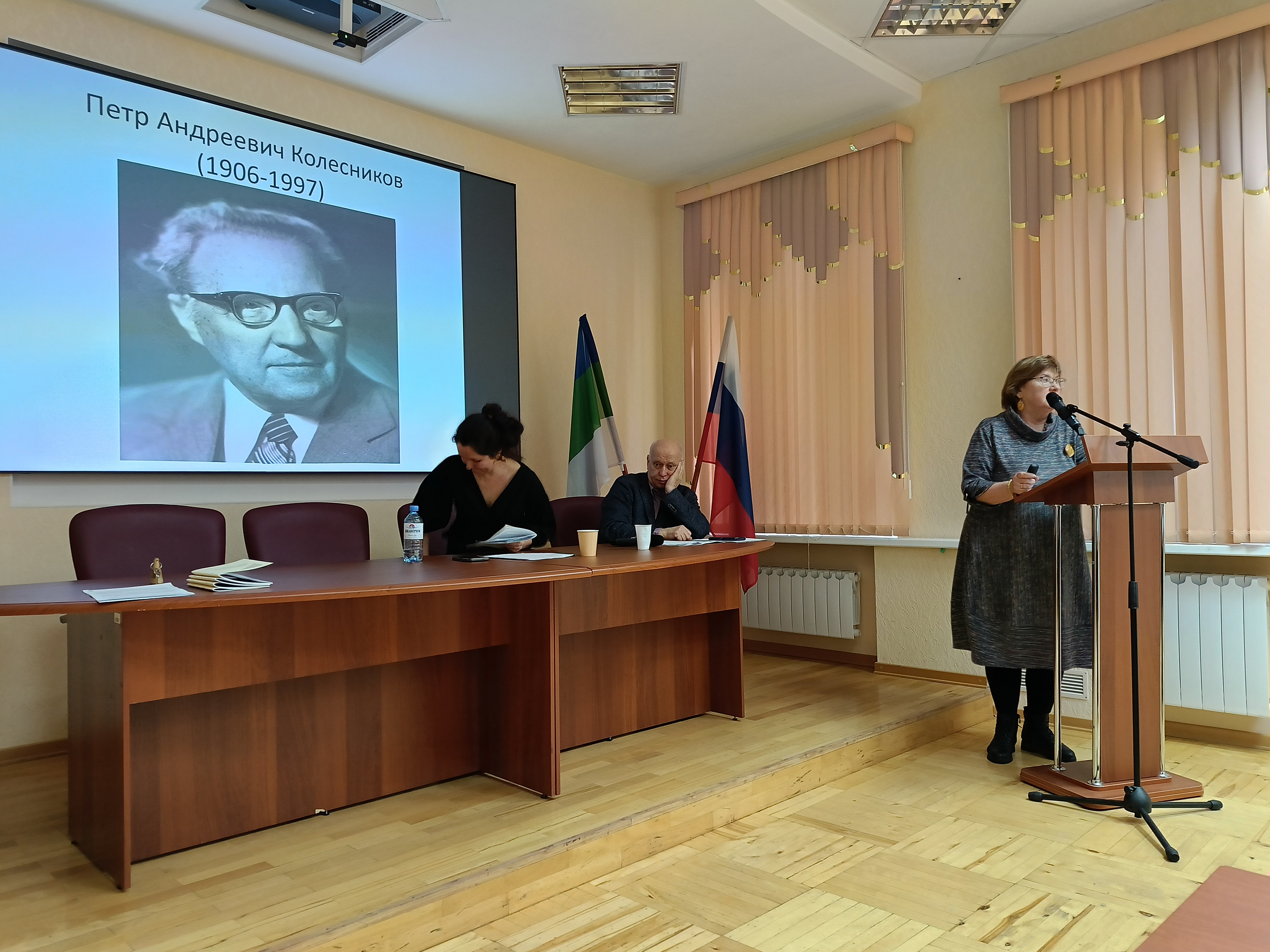 25 ноября в рамках съезда историков профессор Академии приняла участие в работе II Международного симпозиума «Исследователи народов и культур Евразии (к 100-летию со дня рождения Л.П. Лашука и Л.Н.Жеребцова). Здесь она выступила с докладом «Петр Андреевич Колесников — исследователь северной крестьянской поземельной общины».