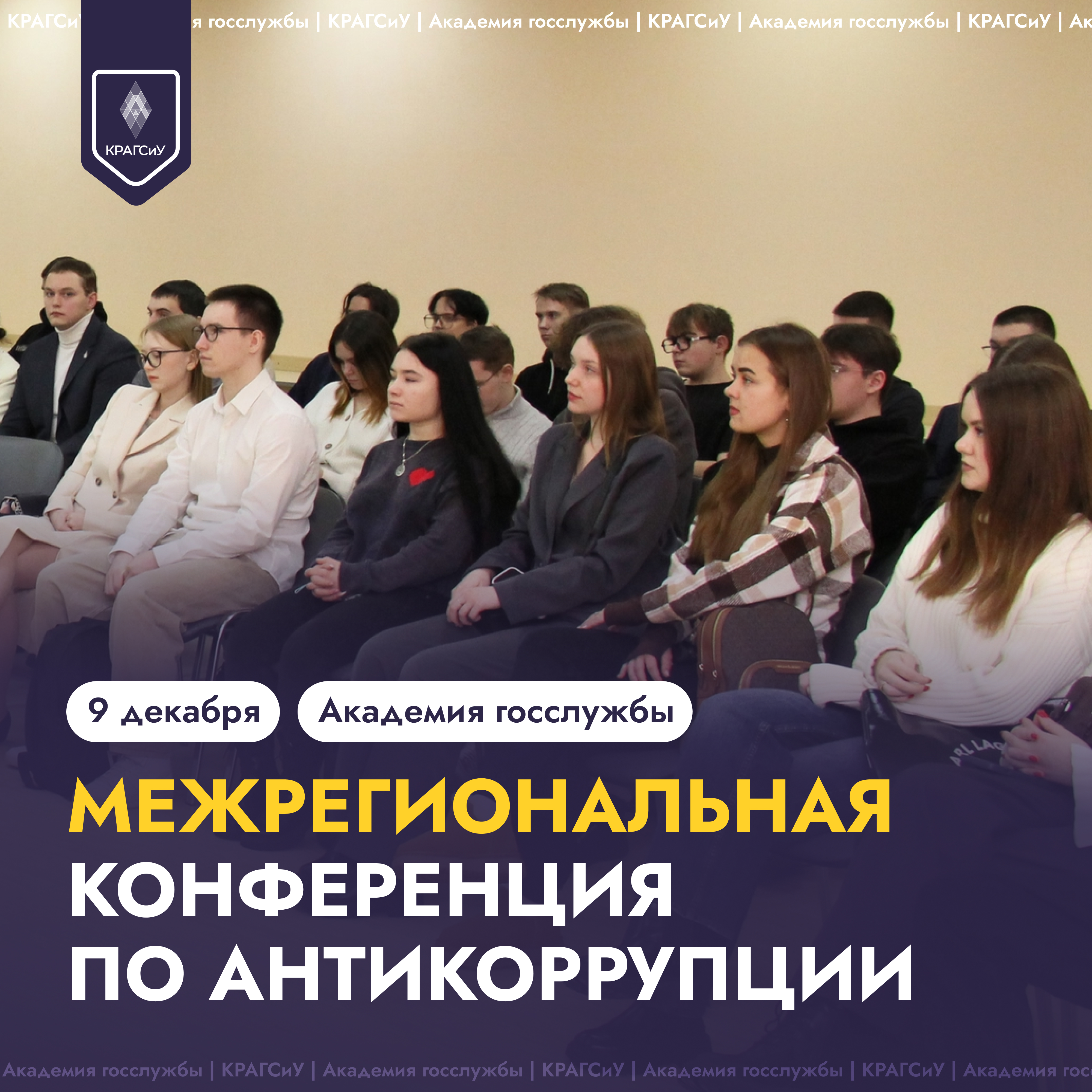 9 декабря 2025 года в КРАГСиУ состоится традиционная межрегиональная студенческая конференция «Актуальные вопросы реализации антикоррупционной политики в Российской Федерации». Конференция приурочена к Международному дню борьбы с коррупцией.