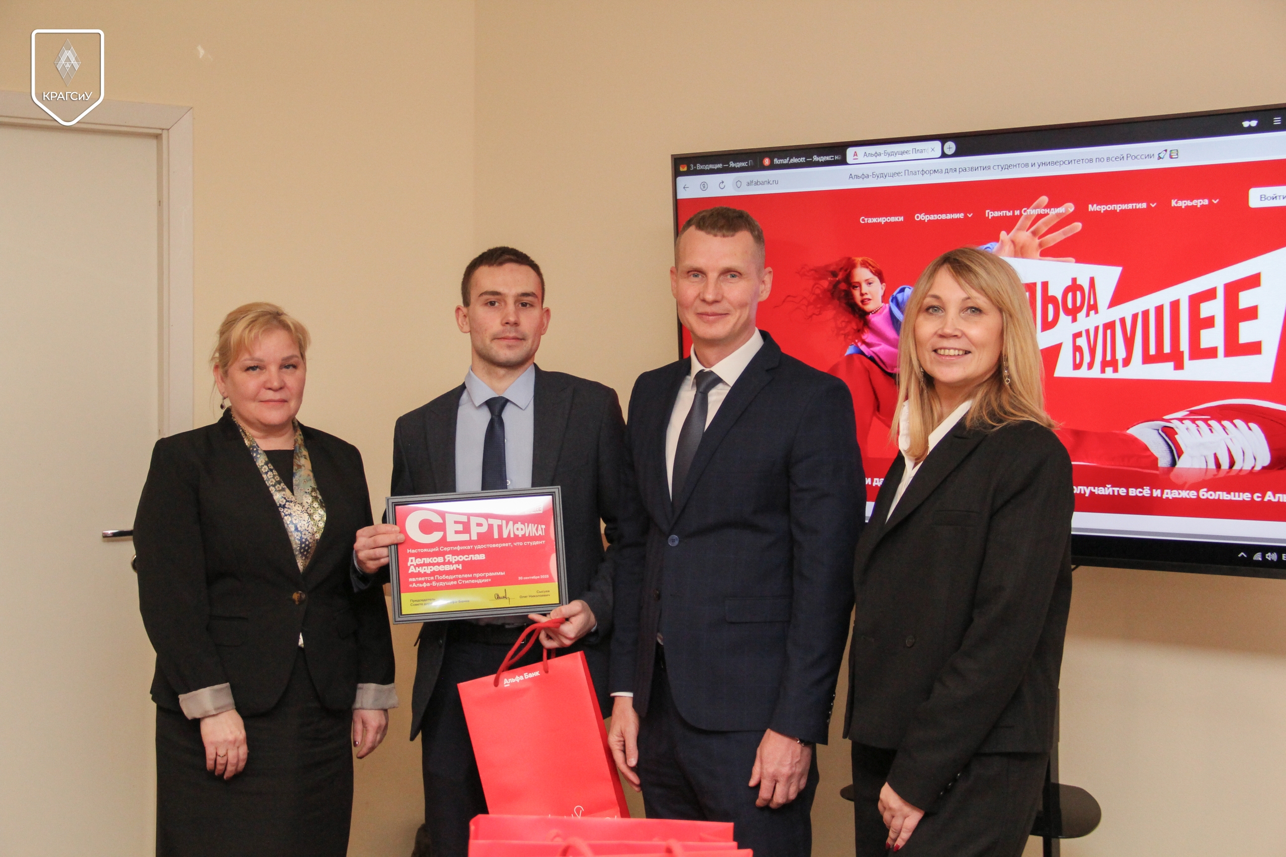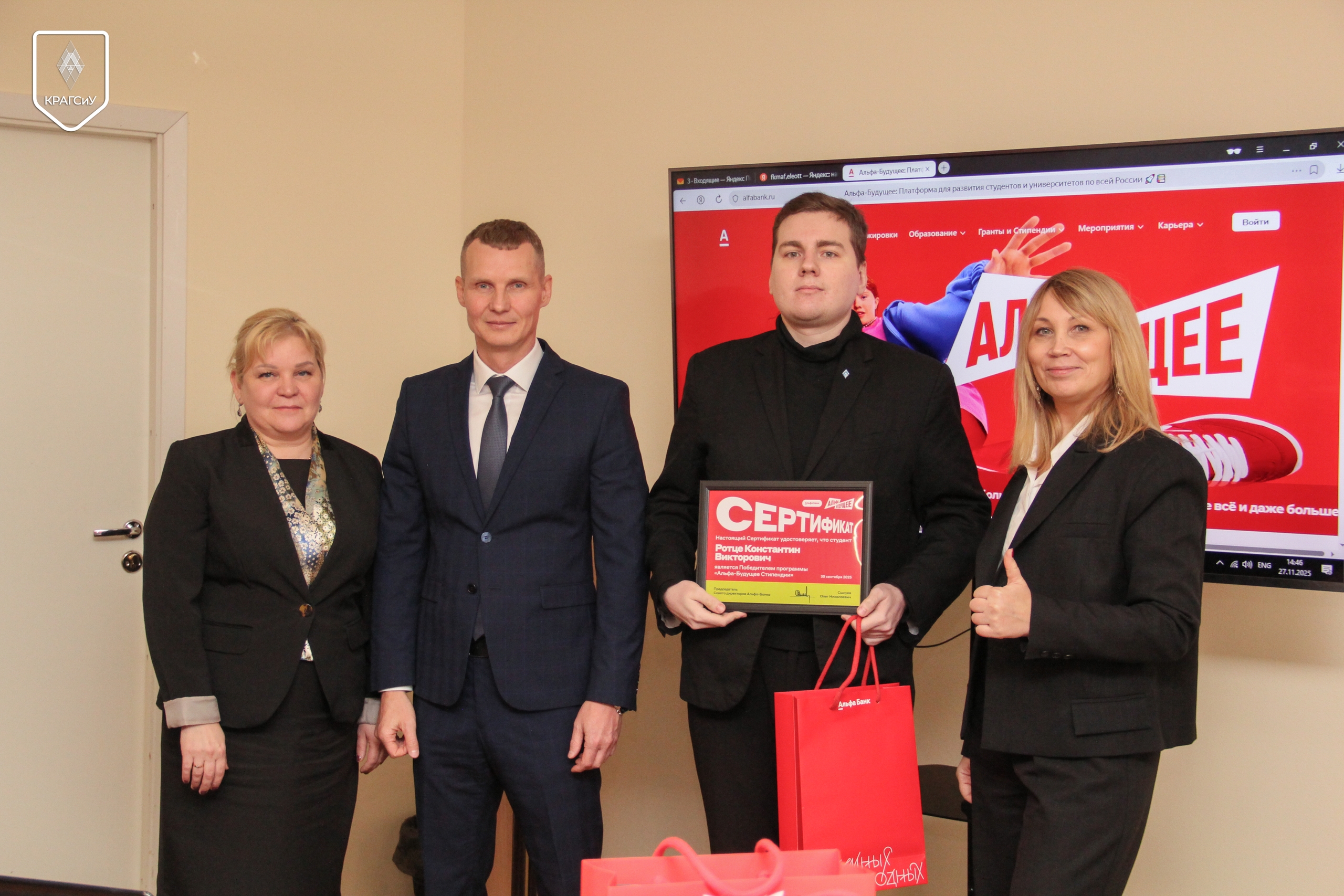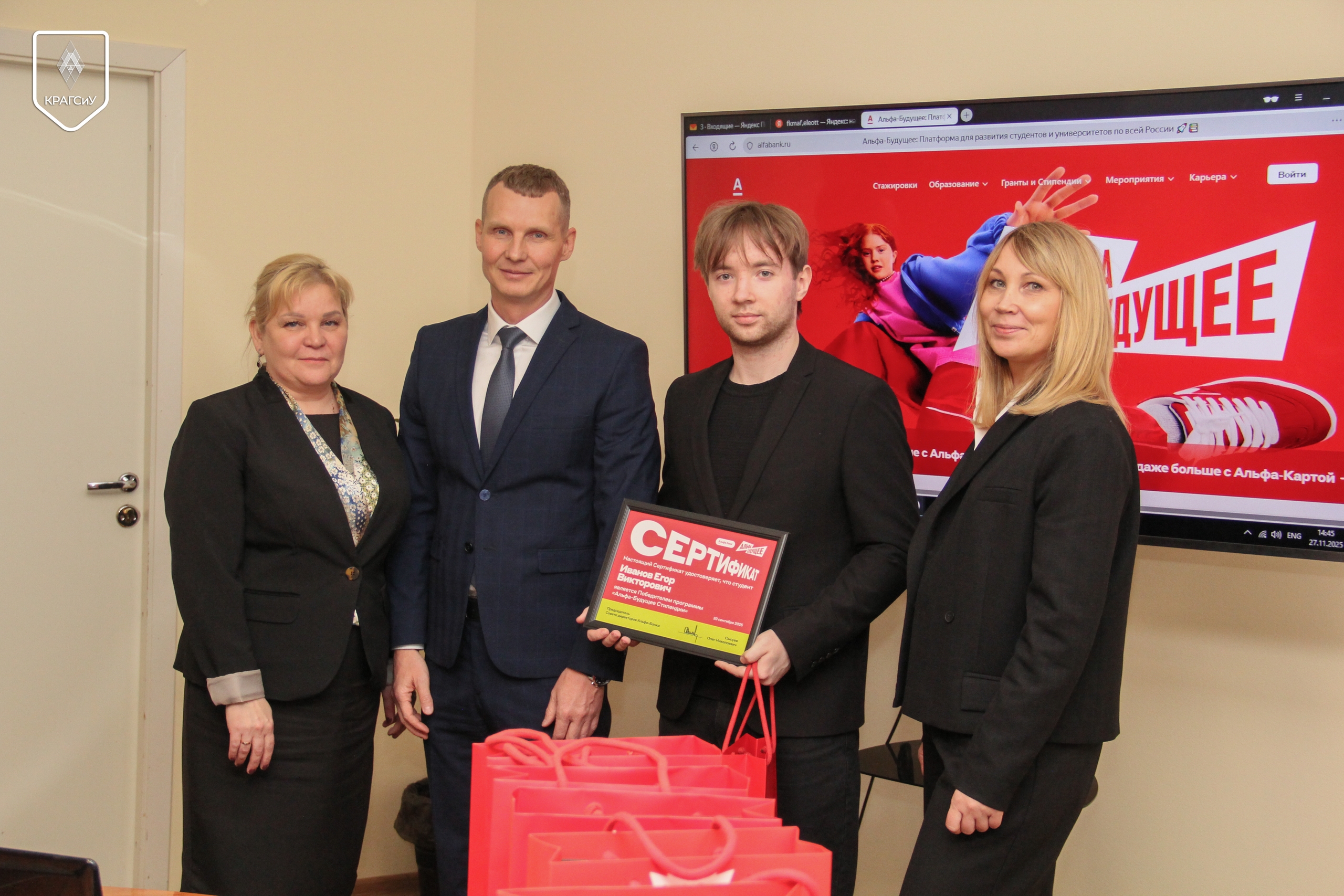 Самвелу Саканяну, Егору Иванову, Ярославу Делкову и Константину Ротце их вручил региональный управляющий Альфа-банка Виктор Черепахин.
