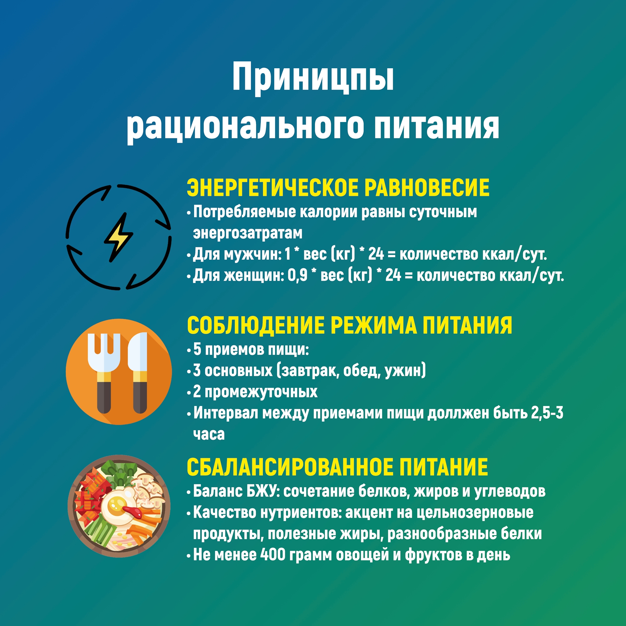 В карточках вы найдёте простые и наглядные ориентиры, которые помогут лучше разобраться в принципах здорового питания, понять, как формировать рацион без крайностей и с чего начать изменения, если хочется позаботиться о себе уже сейчас.