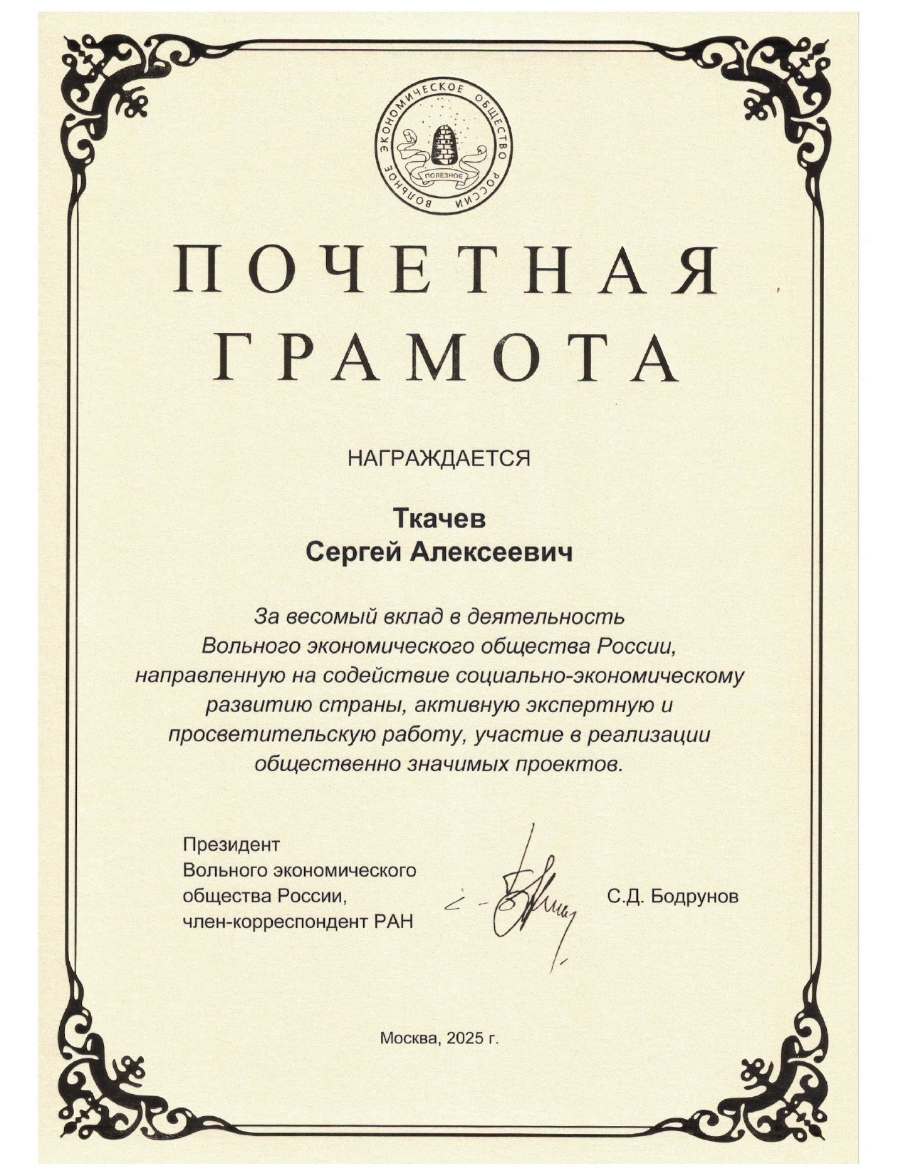 Вольному экономическому обществу России – 260 лет. В ноябре 2025 года в Москве в Государственном Кремлёвском Дворце состоялись Юбилейные мероприятия - Х Всероссийское экономическое Собрание и Юбилейный съезд Вольного экономического общества.