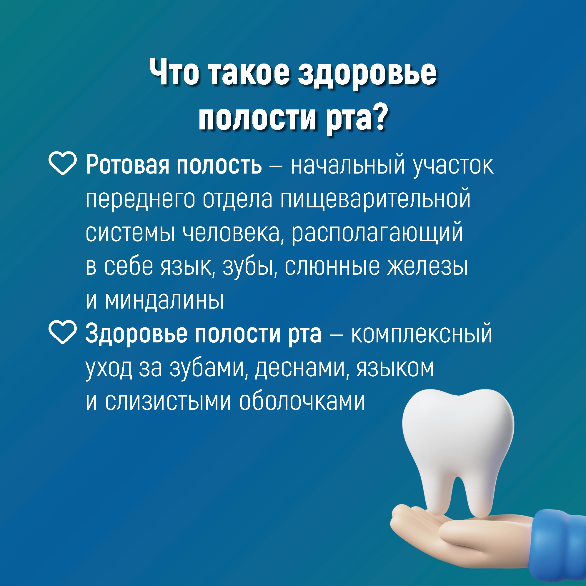 Мы подготовили серию карточек с полезной информацией и простыми напоминаниями, которые помогут по-новому взглянуть на уход за полостью рта и сделать его более эффективным.