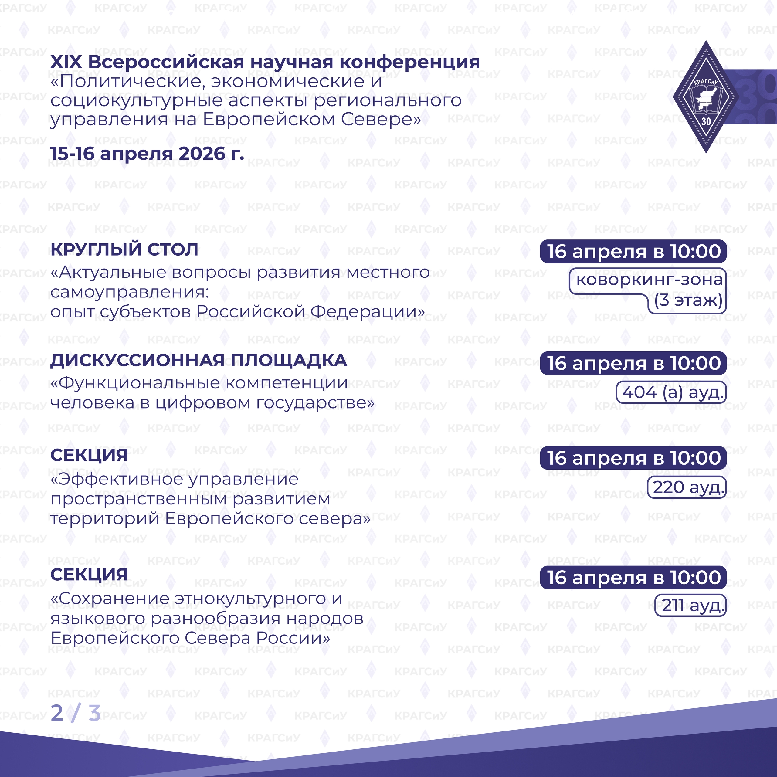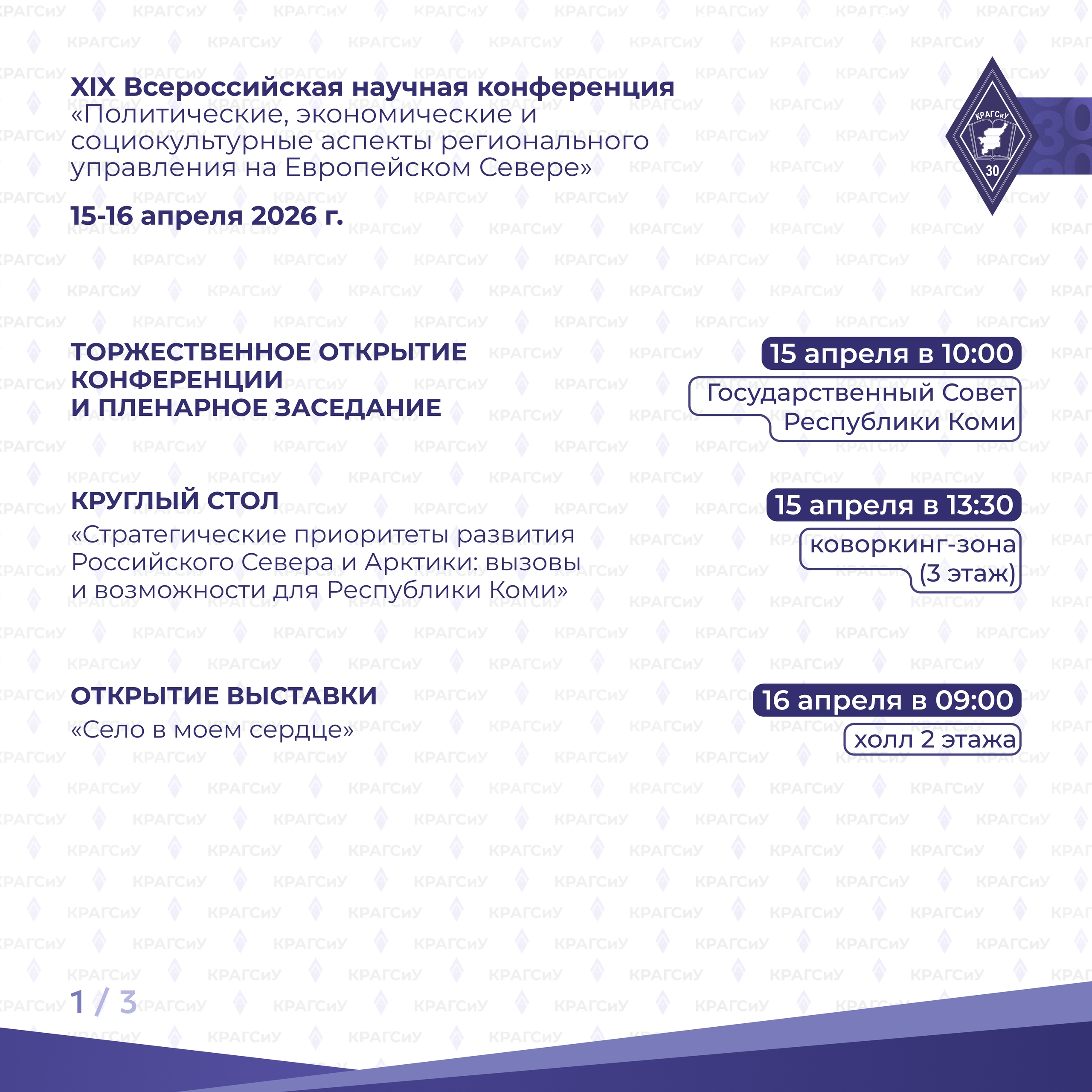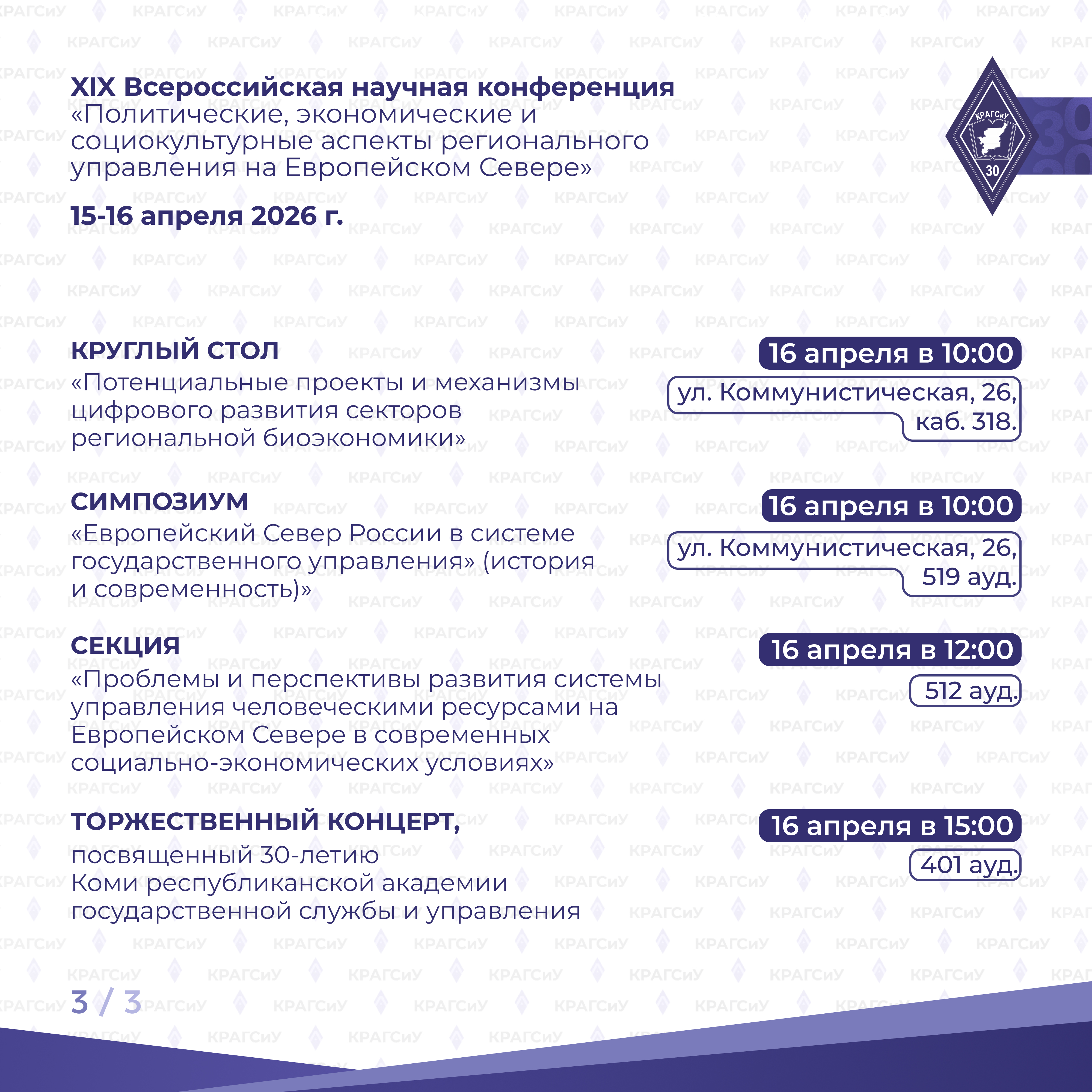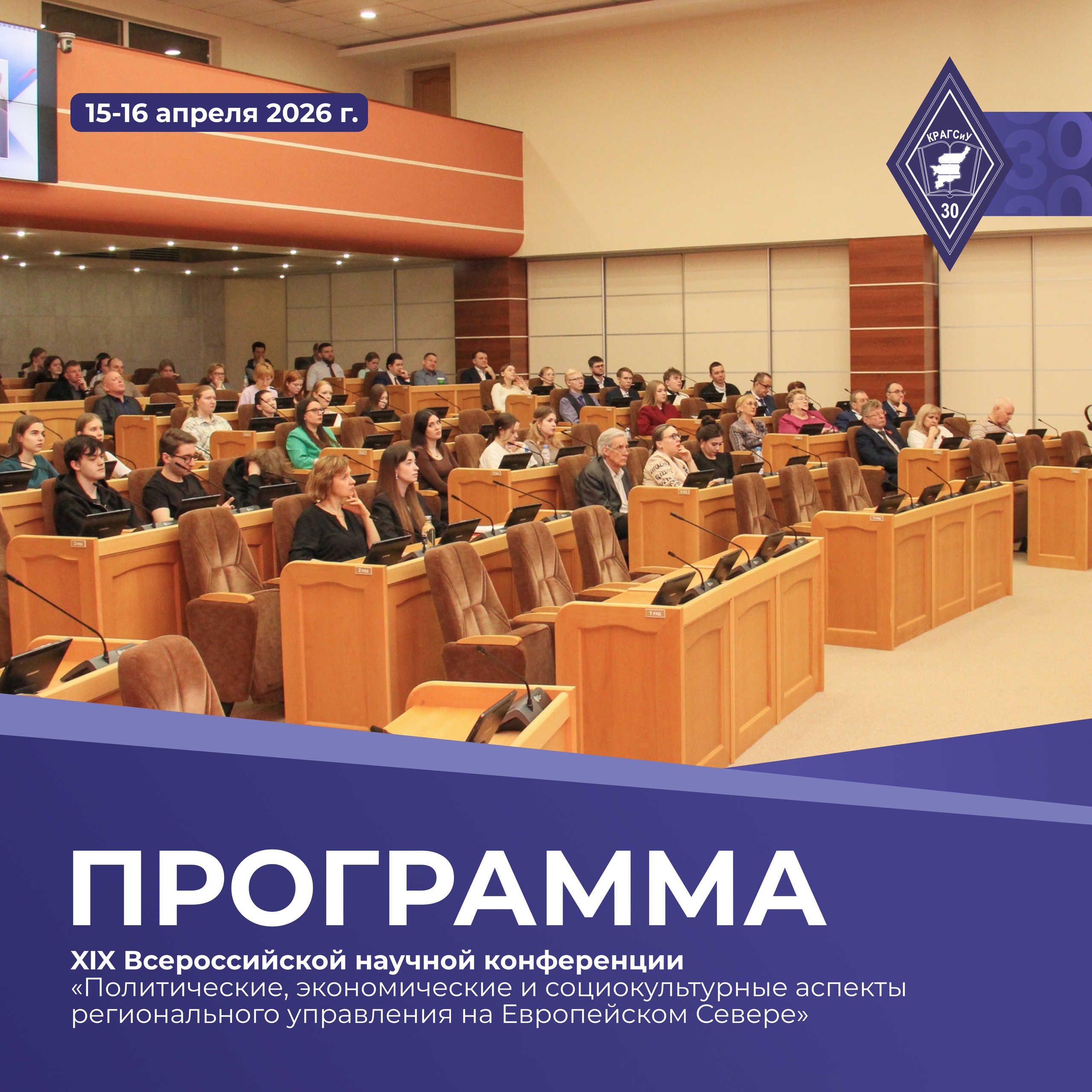 Традиционное масштабное событие Коми республиканской академии государственной службы и управления в этом году приурочено к 30-летию регионального вуза, Десятилетию науки и технологий, Году единства народов России и Году села Республики Коми.