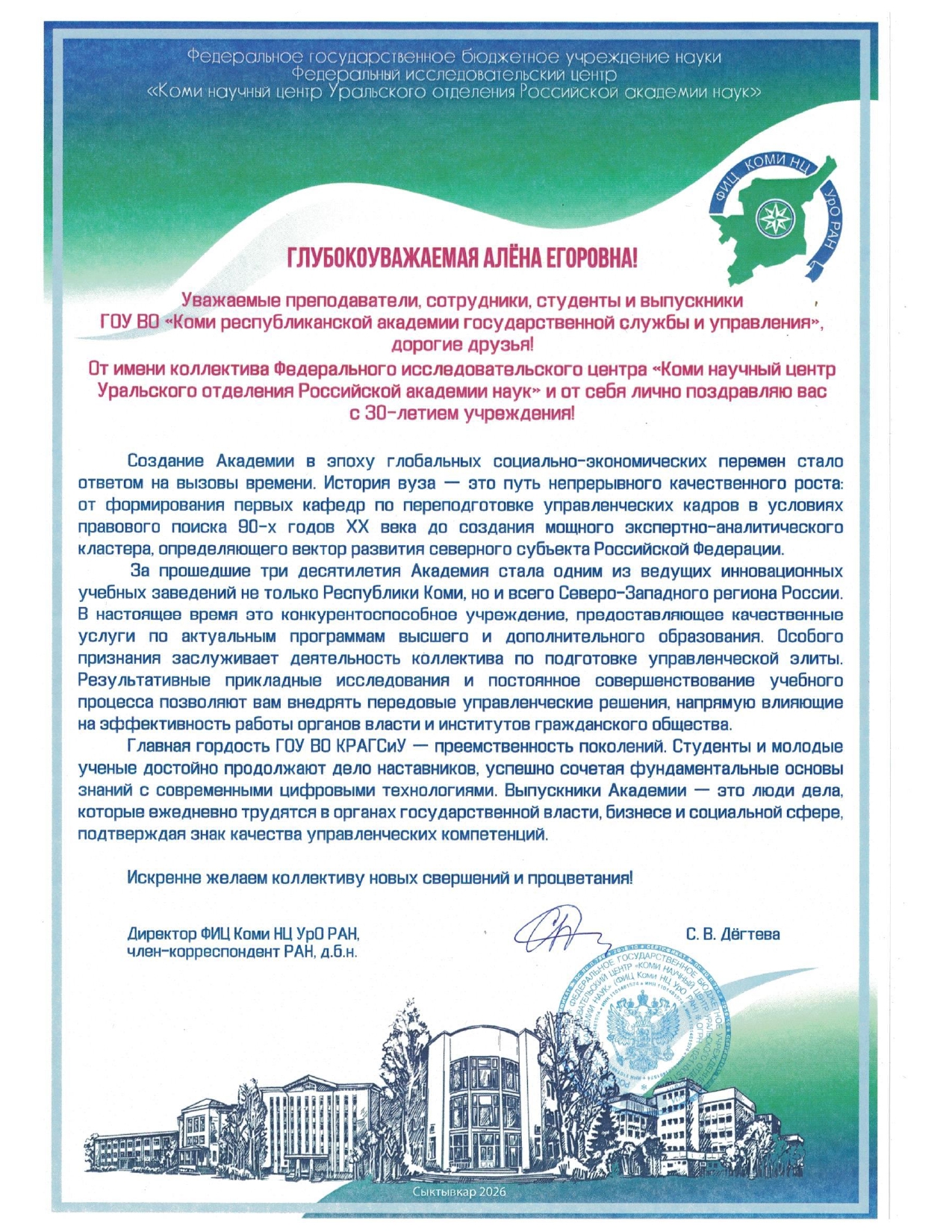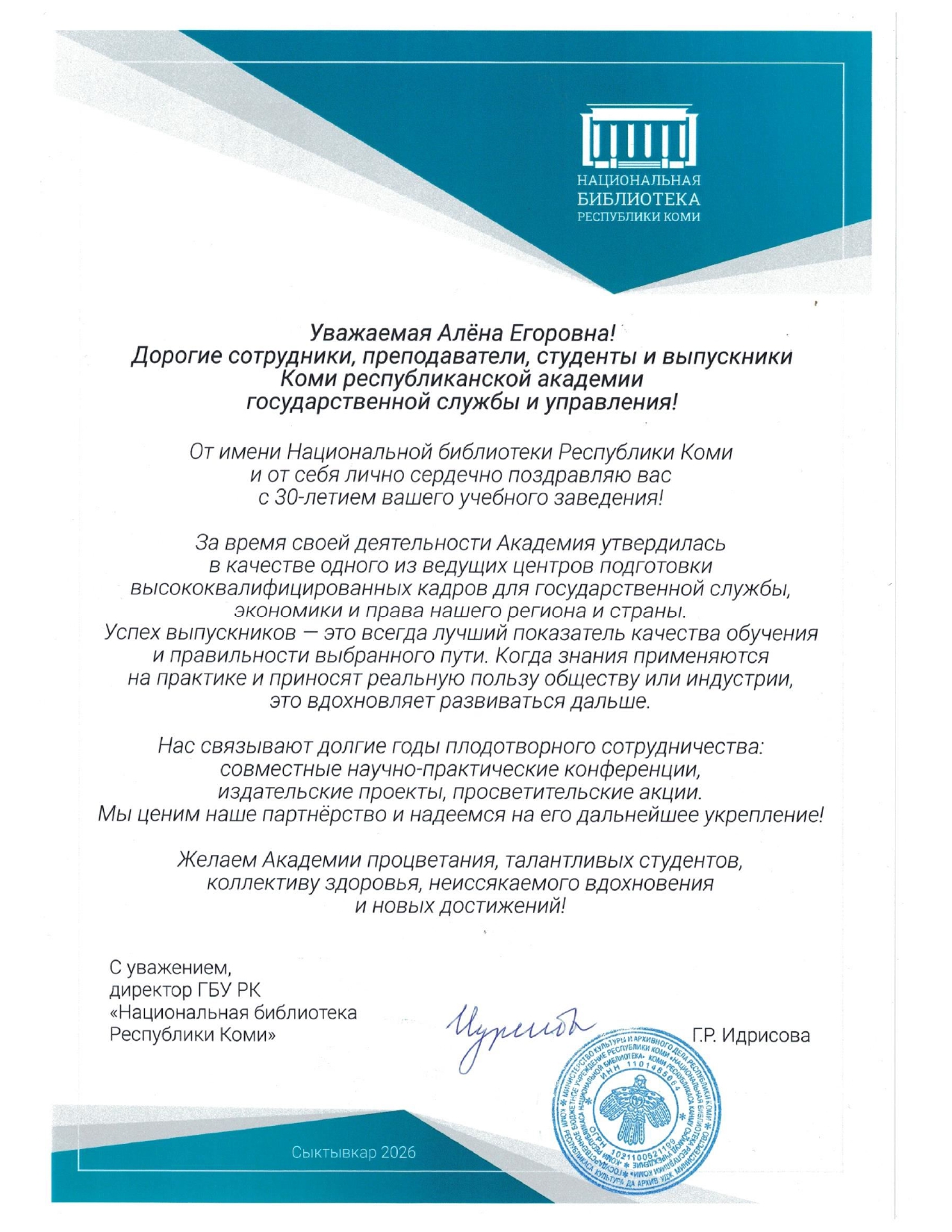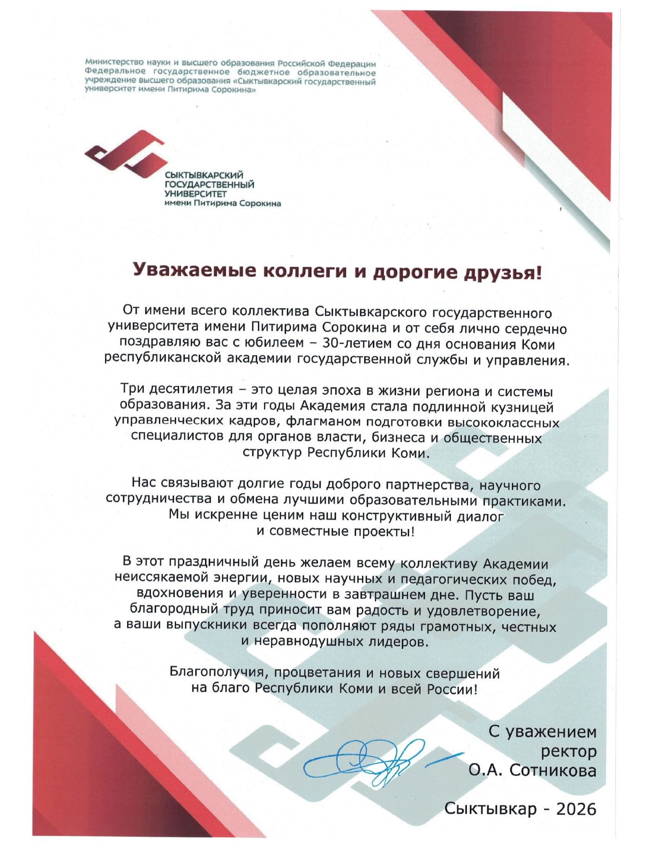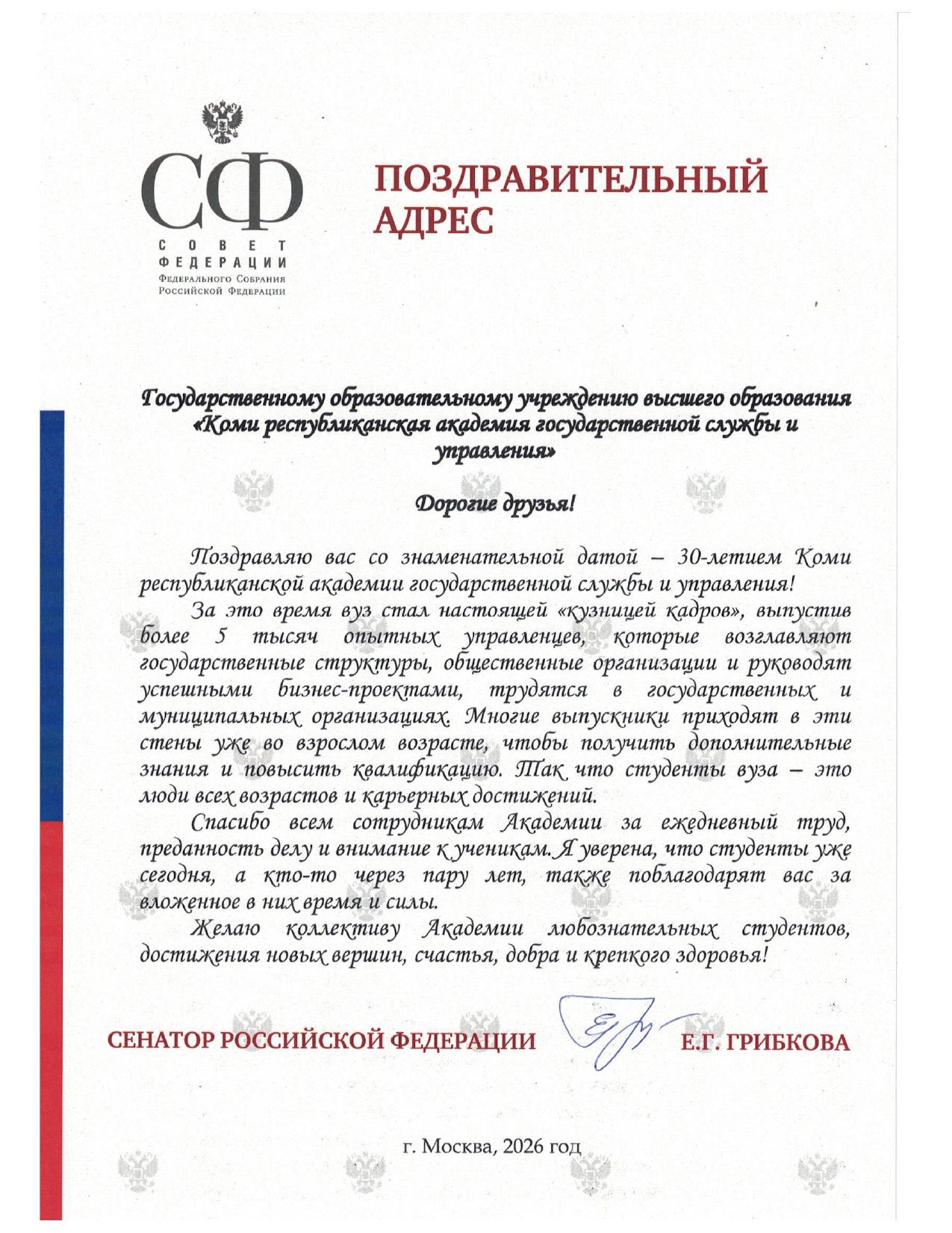 Пришло много поздравлений со знаменательной датой от друзей и партнёров Академии. И мы с радостью их публикуем.