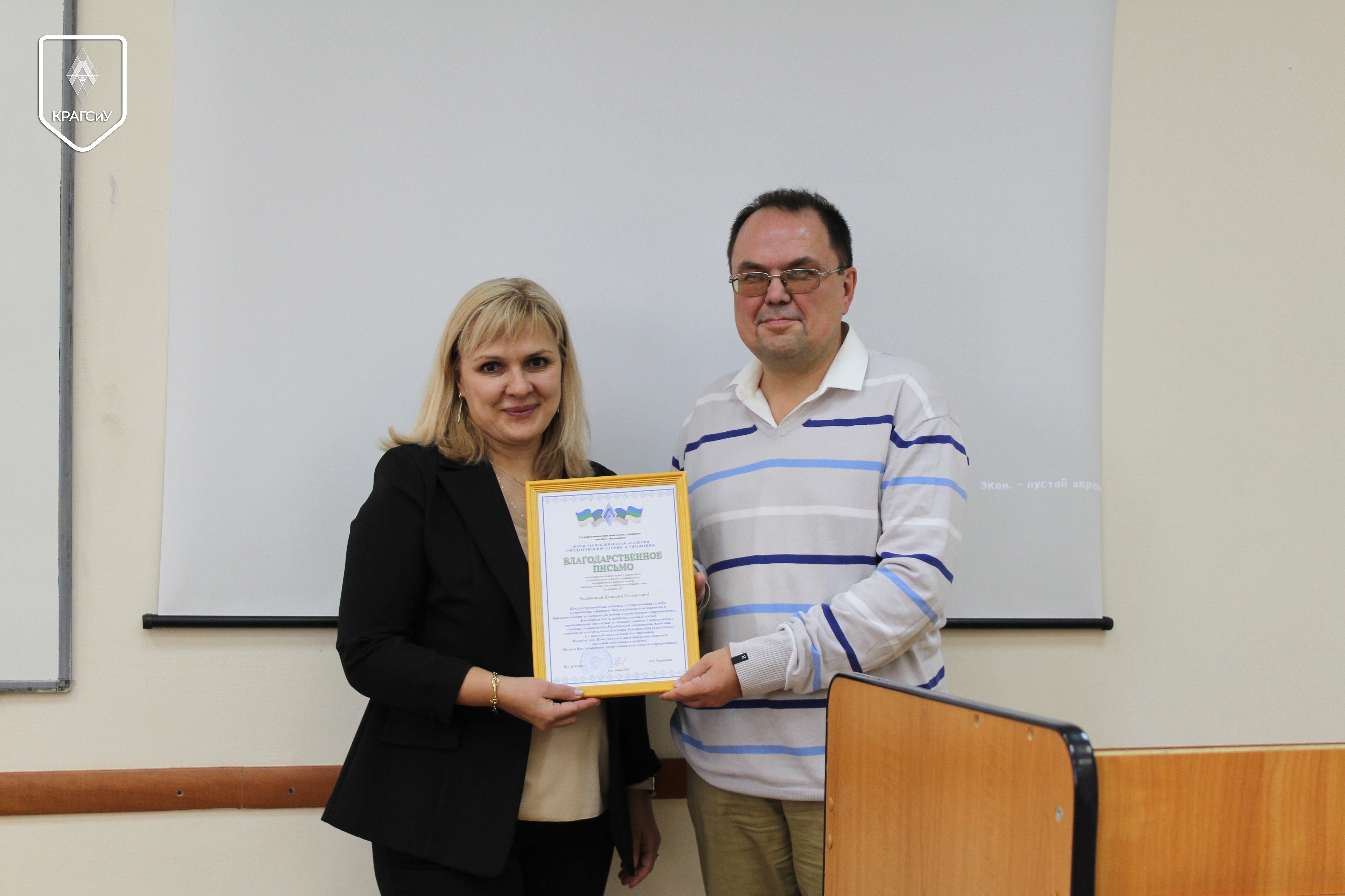 Дмитрий является наставником с первых дней деятельности Юрлаборатории КРАГСиУ. За это, а также за профессионализм и активное участие в мероприятиях в рамках работы Юридической лаборатории Академии и.о. заведующего кафедрой правовых дисциплин Жанна Василевская вручила эксперту Благодарственное письмо от Академии.